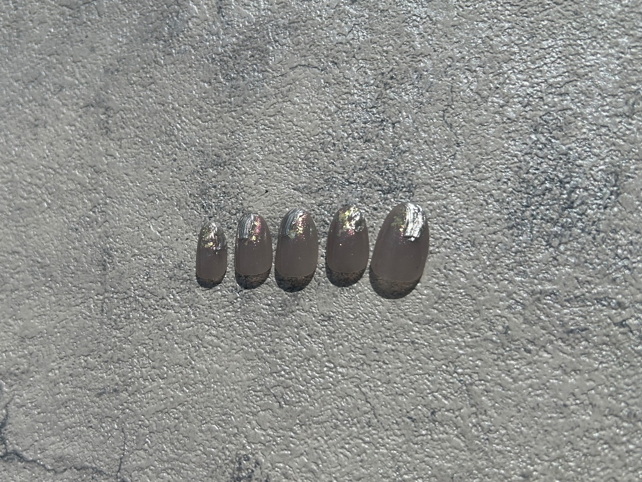 上品なグレーのトーンは、指先に落ち着きと大人の雰囲気をもたらします。