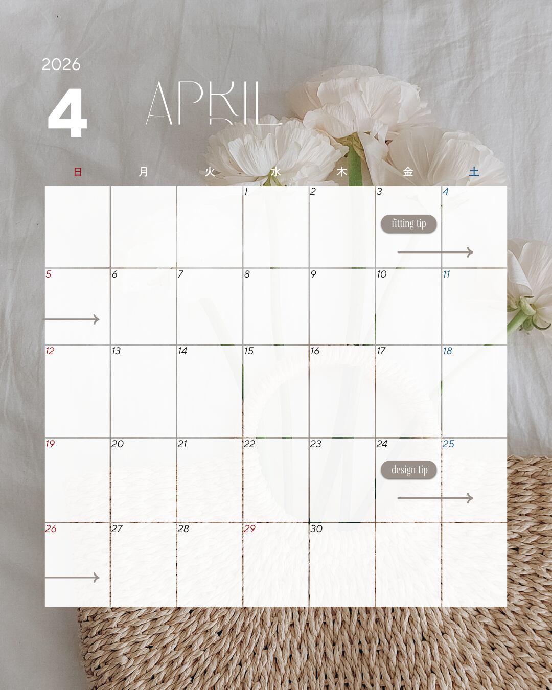 4月のスケジュールをご案内します。